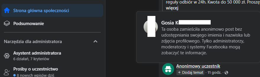Dlaczego to ma znaczenie? Bo wiele osób wrzuca „anonimowo” rzeczy, których normalnie by nie napisało ze swojego profilu – a potem zdziwienie, gdy komentarz znika, wpada ostrzeżenie, albo ktoś z administracji reaguje bardzo konkretnie. Jeśli piszesz anonimowo w grupie, zakładaj, że to nie jest tarcza nie do przebicia.